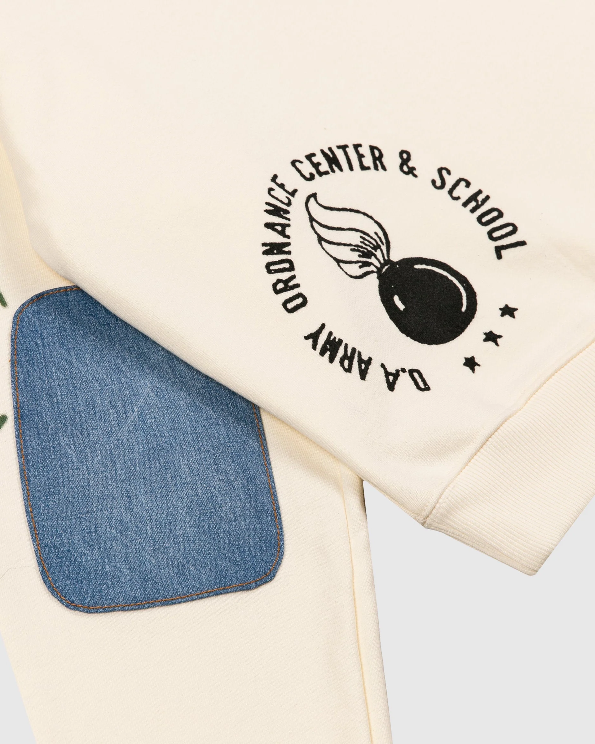 The Dead Atlantic Camp Wright Quarter-Zip offers a flash of nostalgia. Its unique silhouette features a slightly cropped and oversized fit with a gold zipper, denim collar, and denim elbow patches.