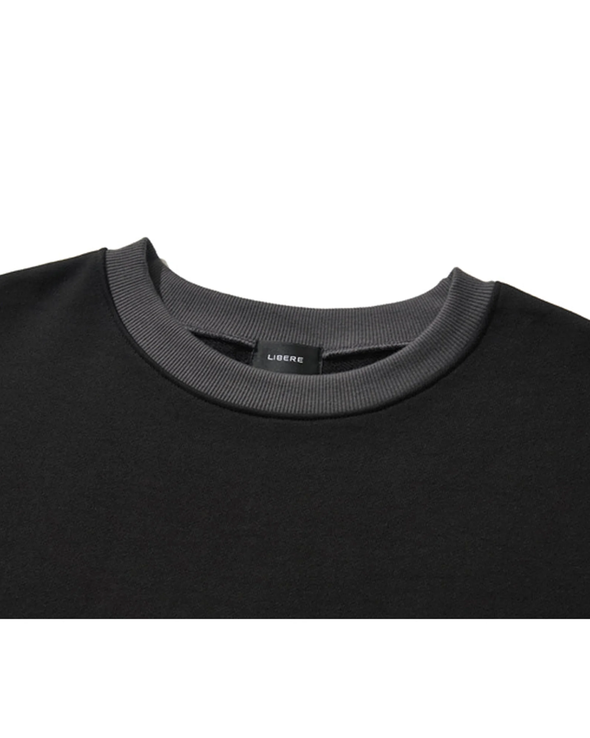 The Libere Hockey Jersey Sweatshirt in Charcoal is a pullover fleece sweatshirt in the style of a hockey jersey. The bold design features Libere logos embroidered on the front, back, and both sleeves.