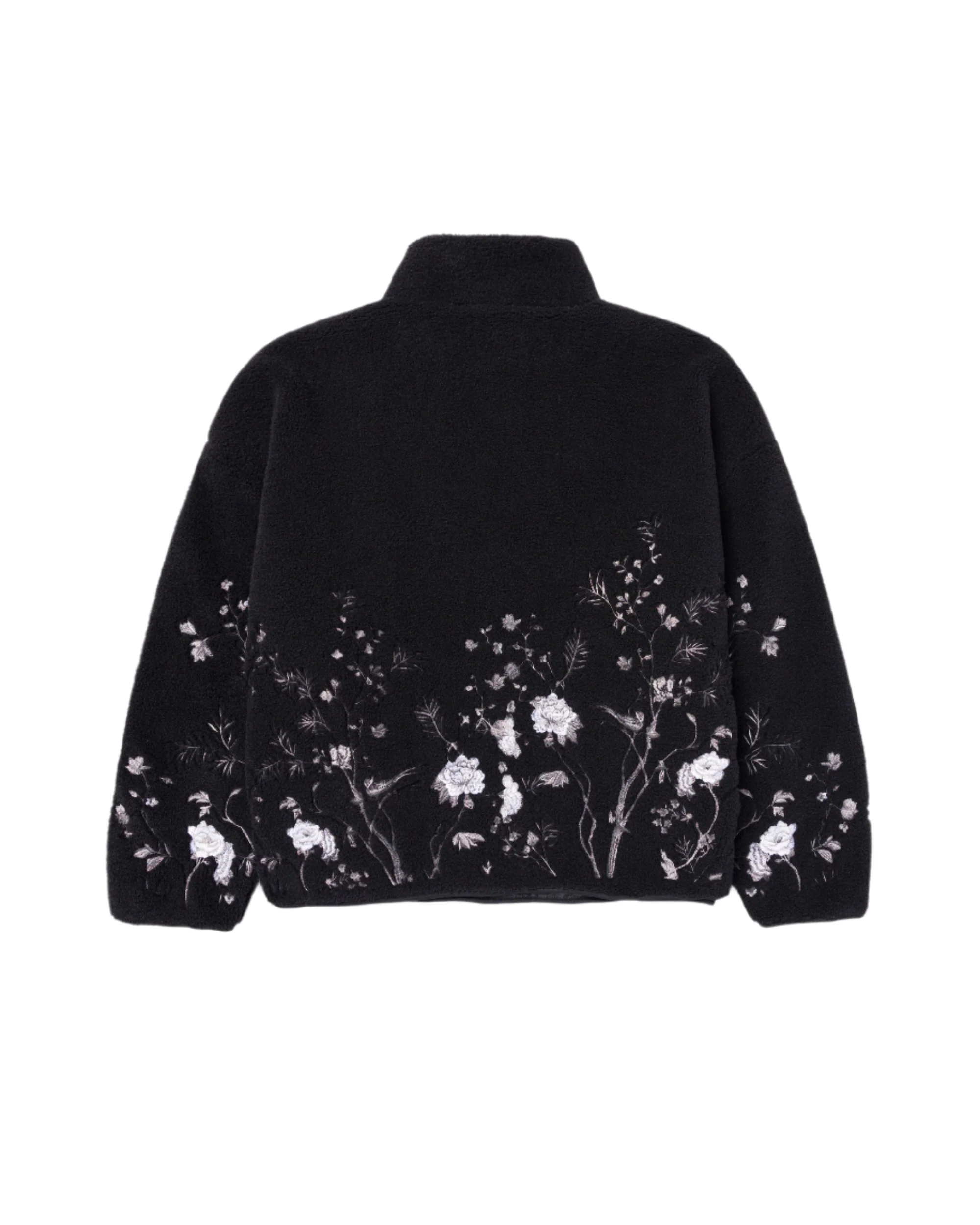 Be one with the beauty of nature and stay extra cozy while you're doing it with the Ryoko Rain Quarter Zip Sherpa Pullover. The premium fleece pullover features an intricately embroidered floral motif on the front and back.