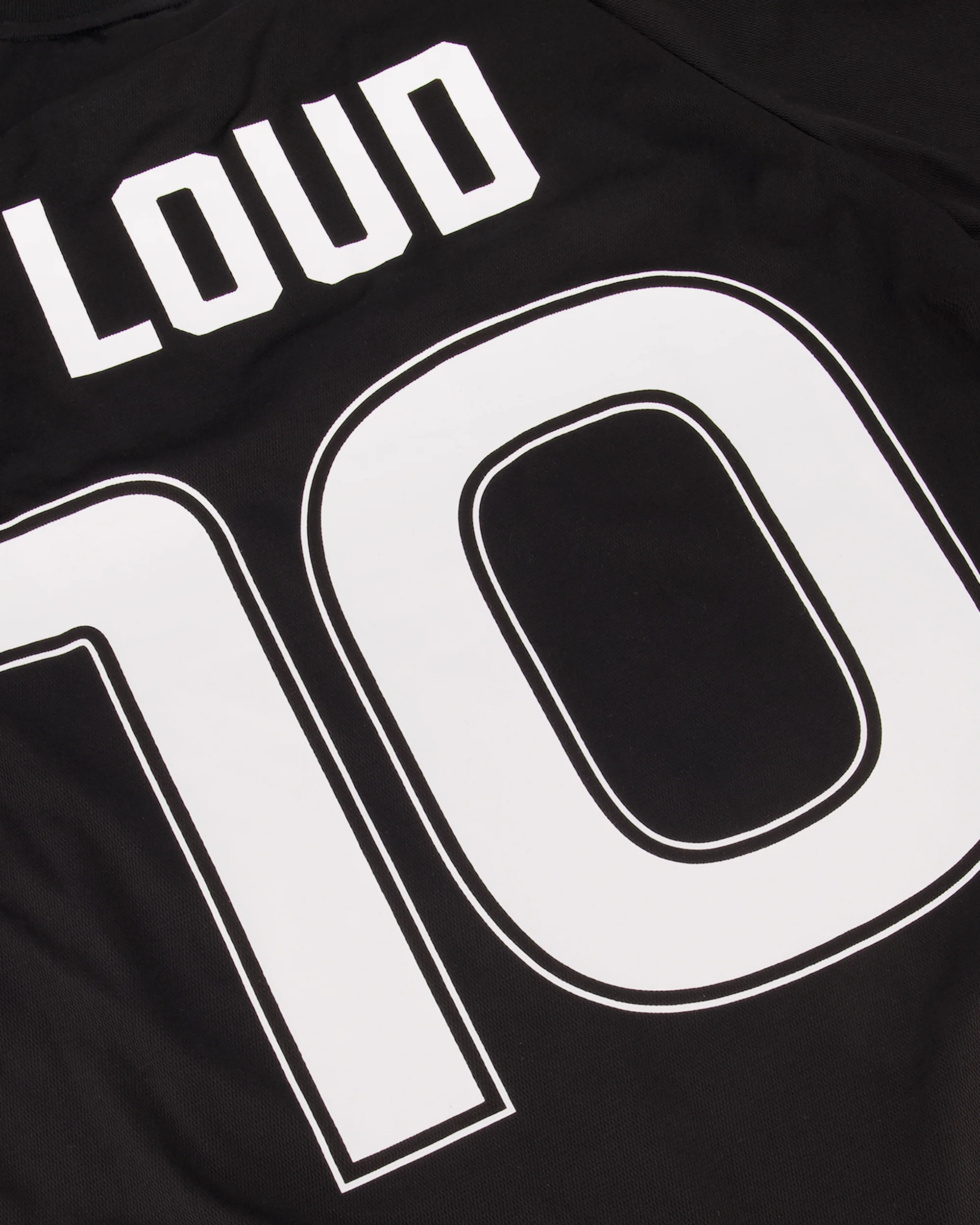 Get in the game with the Rolling Loud 10 Soccer Jersey in black. The custom soccer jersey features Rolling Loud graphic prints on the front, back, and sleeves for a decidedly sporty aesthetic.