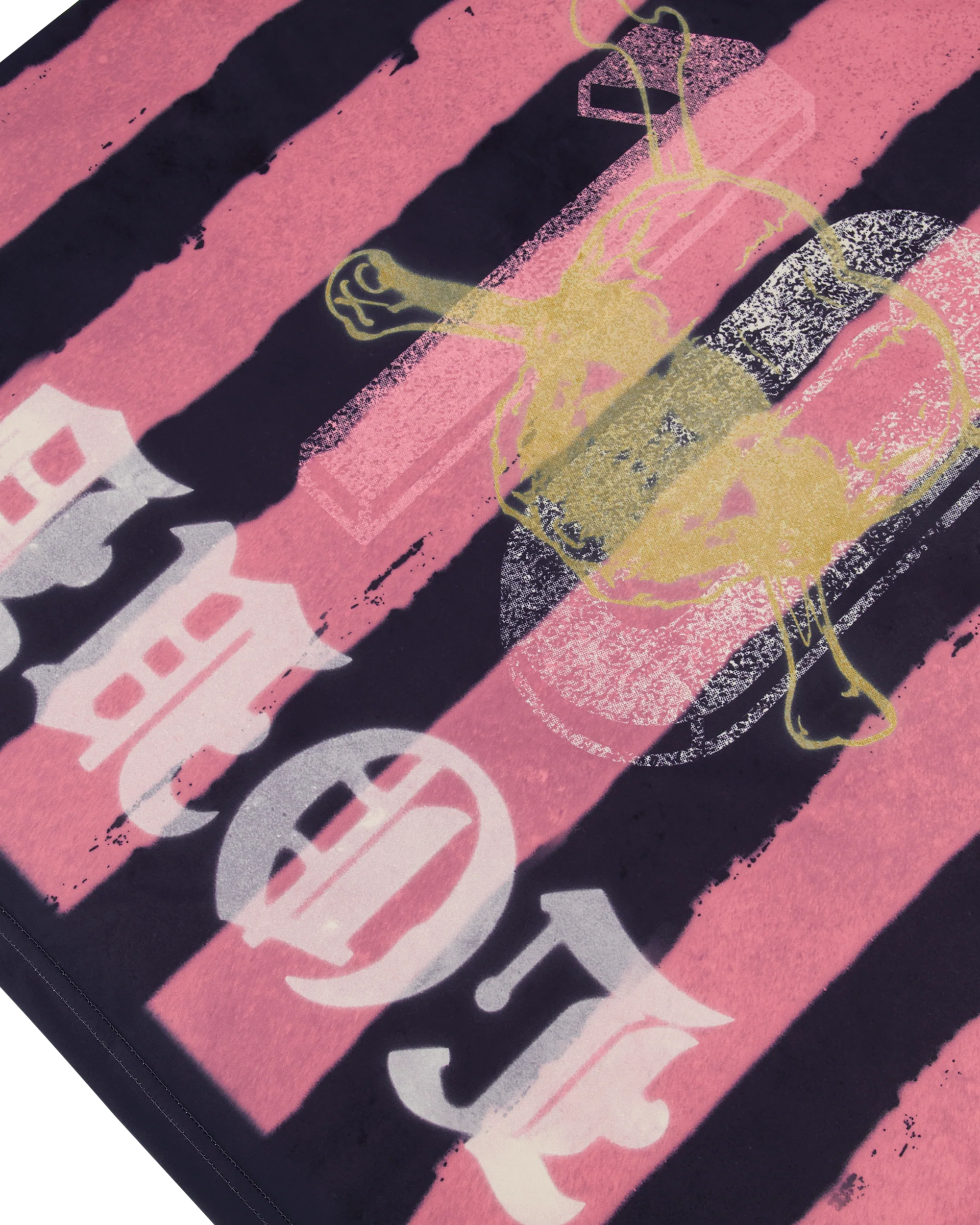 The Rolling Loud 10 Years Soccer Jersey Tee in Pink/Black is an oversized T-shirt with a soccer-inspired design. The bold tee features a sublimated stripe print in pink and black with additional graphics layered on the front and back.