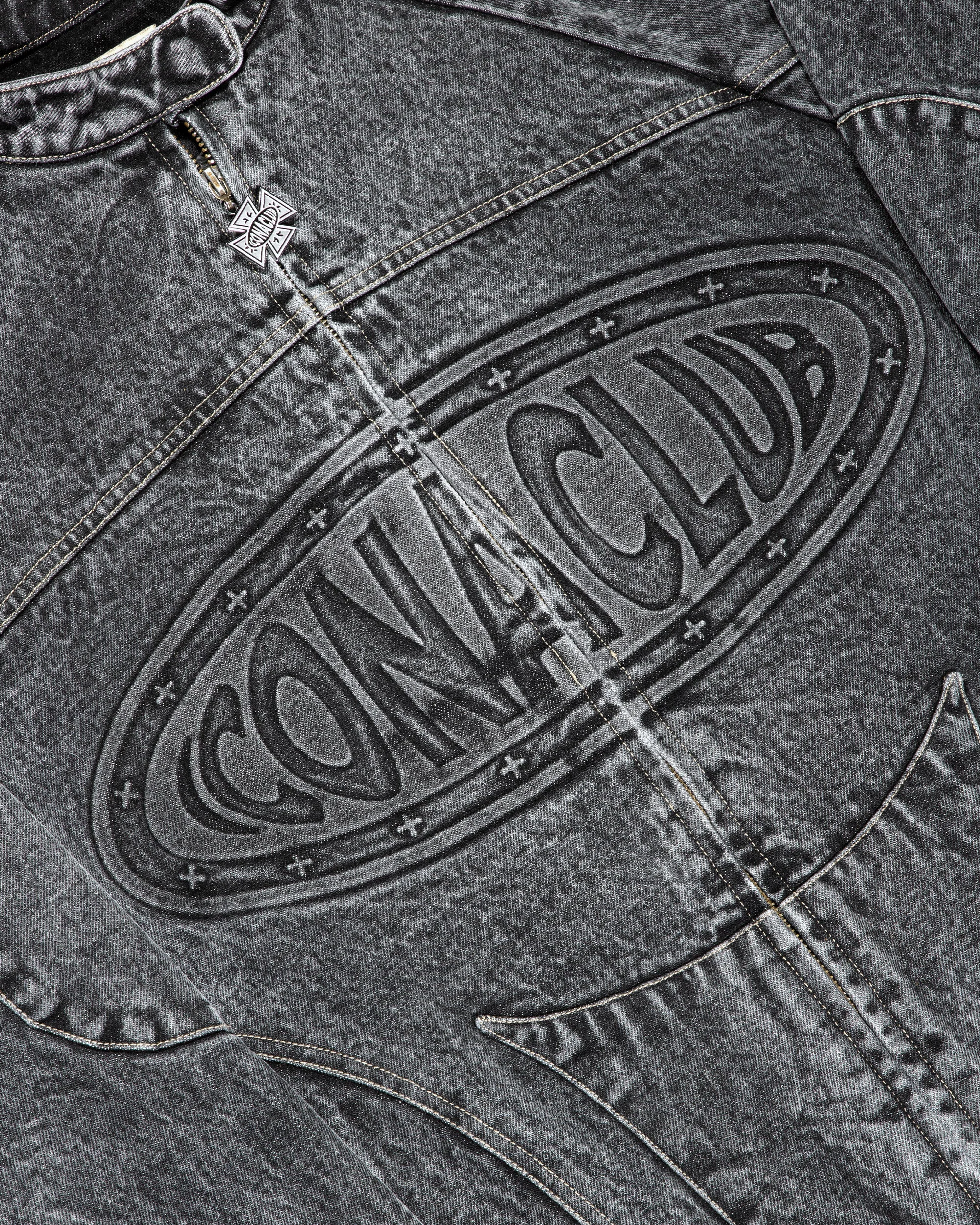 The Iconaclub Washed Denim Moto Jacket is a bold motocross-style outwear piece with the brand's signature fusion of streetwear and motorsports aesthetics. The jacket has a faded acid wash treatment with an embossed center chest logo on the front while metal Iconaclub pins detail the back.